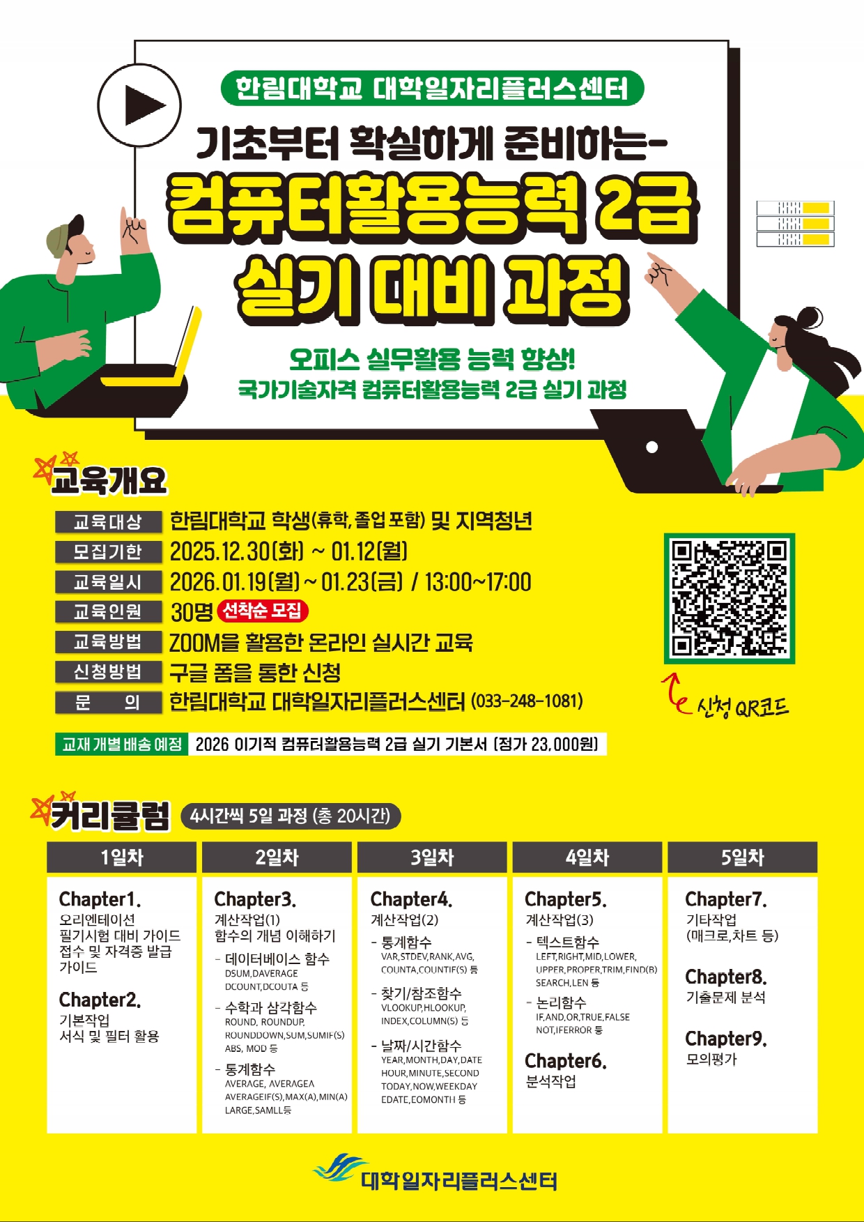 [한림대학교 대학일자리플러스센터] 2025학년도 동계 자격증 취득 프로그램 홍보