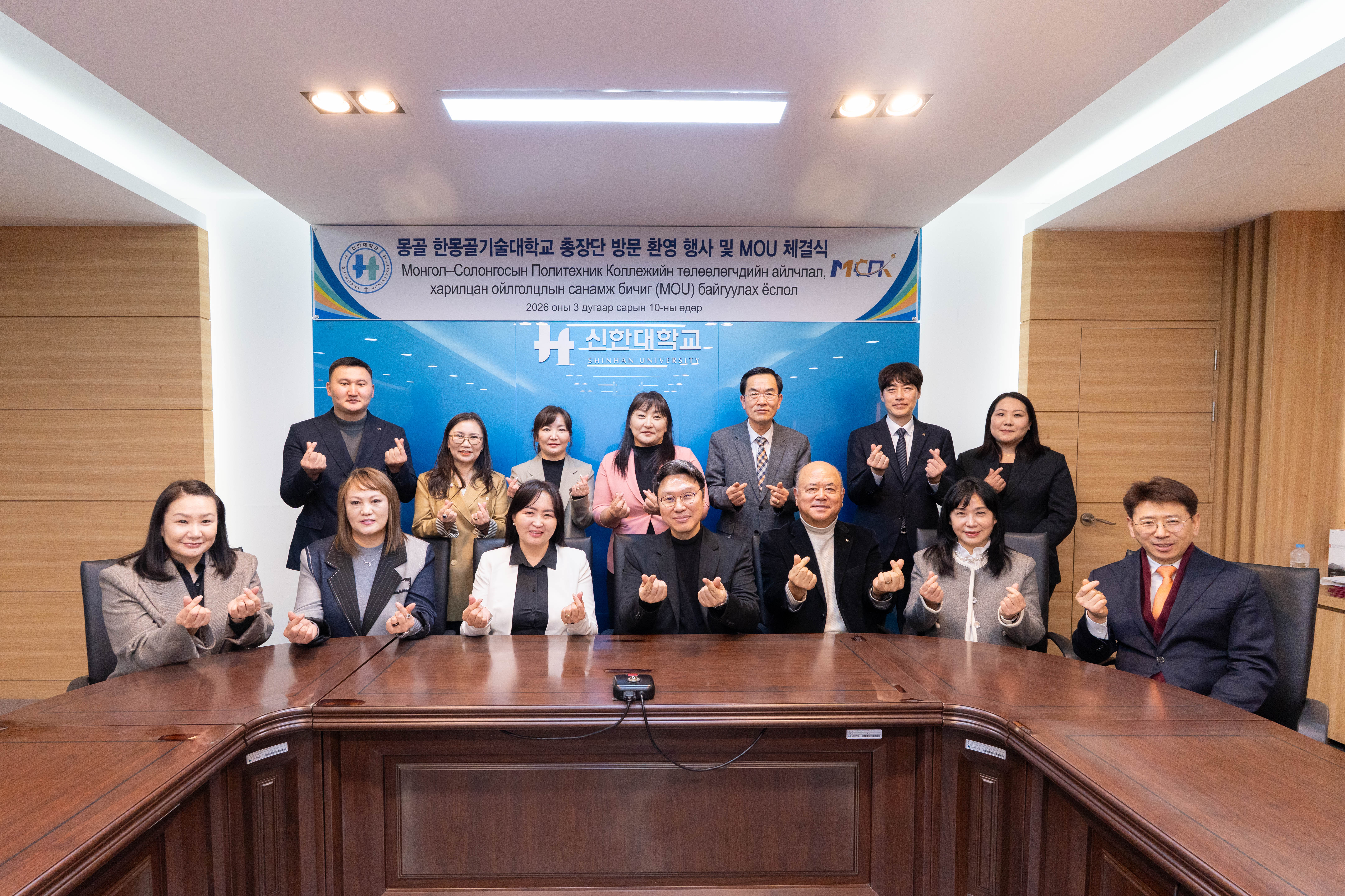 신한대학교(총장 강성종)는 국제처는 2026년 3월 10일 본교 믿음관 세미나4실에서 몽골 한몽골기술대학교(Mongolia-Korean Polytechnic College, 이하 MKPC) 총장단을 초청하여 양교 주요 보직자들이 참석한 가운데 국제교류 협력 강화를 위한 업무협약(MOU)을 재체결했다.